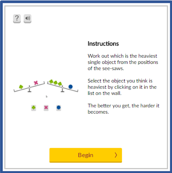 Attention | Concentrating on particular information whilst ignoring other non-related information | You demonstrate awareness of a type of object shown in a box and where the box is on a grid but ignore the object’s colour |